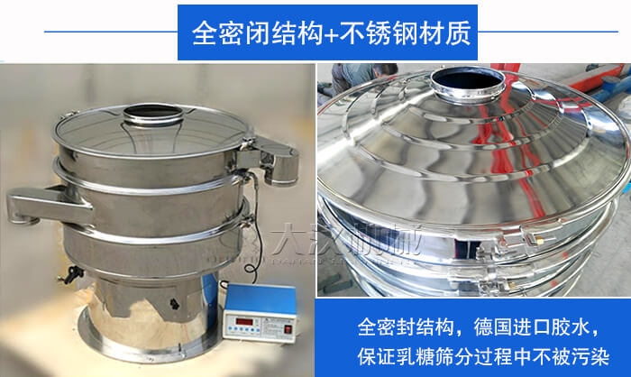 乳糖超声波振动筛以全密封结构,再加上硅胶或橡胶材质的密封件进行密封,然后德国进口胶水达到更好的密封效果,可以保证乳糖筛分过程中不被污染。另外,对于乳糖筛分来说,对其筛分环境的卫生程度也有一定的要求,所以我们的超声波振动筛选取的是304不锈钢材质,经由技术人员的抛光处理,操作更安全卫生。
