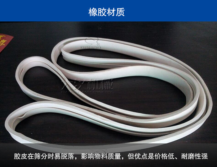 橡胶材质的密封件中使用广泛,,但在食品、化工类行业使用较少,因为橡胶本身对于物料会有一定的污染成分,胶皮在筛分时易脱落,会严重影响物料质量,但其价格低、耐磨性强,用户在购买振动筛应根据物料的不同要求安装合适的密封件。