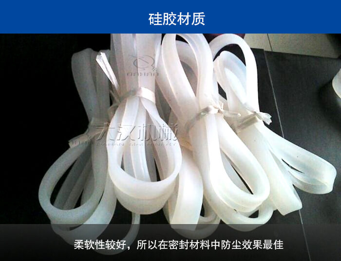 颜色呈乳白色,其柔软性较好,所以在密封材料中防尘效果佳,对于筛分淀粉、泥子粉类高污环境防尘效果佳,大汉厂家建议用户在选择振动筛时应尽可能的选择硅胶材质作为防尘优选,虽然成本高一些但实际价值要远远高于其它两种材料(特别是食品及医药行业)。