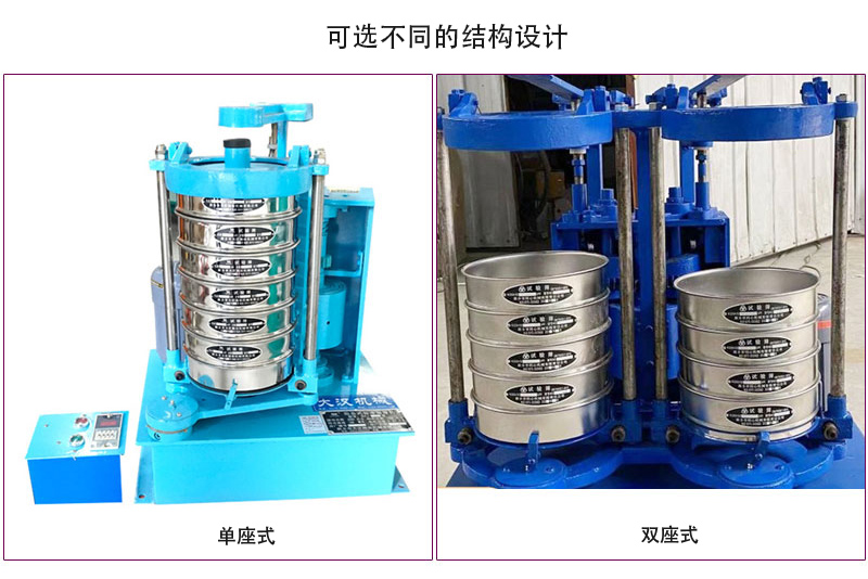 振筛机又叫标准振筛机,在工作时同时具备往复、拍击/顶击振动两种运动形式,所以不会出现物料堵塞筛面的问题,下料快,即可装夹ф200标准筛,又可夹装ф75、ф100套筛,可自动设定筛分时间,时间1s-99h可调,保证试验的重复性和一致性。