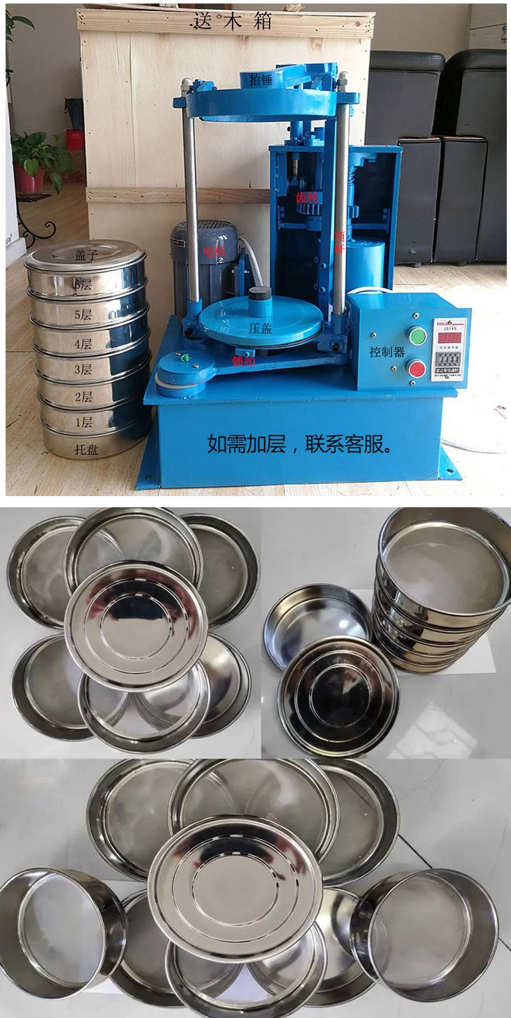 振筛机又叫标准振筛机、实验室振筛机,是一种专门用于实验室环境下的筛分设备,用于对实验室样品进行粒度分析和筛分试验,工作过程中,每分钟提供290次振动和156次敲击,以产生有效的筛分作用,下料更快,这种运动方式使得堵塞在网孔上的物料顺利过网,减少黏附和堆积现象,并提供内置99分钟计时器,该装置可容纳7个筛子,另外包括一个接料盘,可实现对物料的粒度分级。