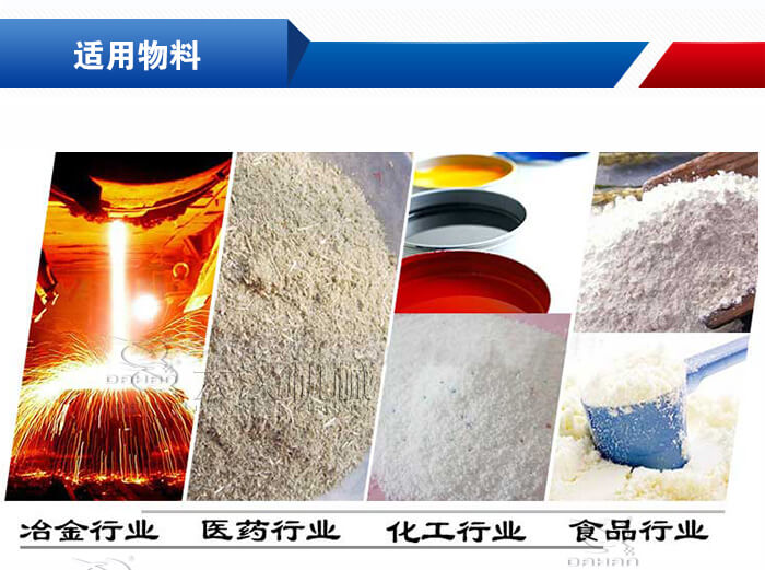 冶金行业:氧化钛、氧化锌、电磁材料、金属粉末、焊条粉末等。