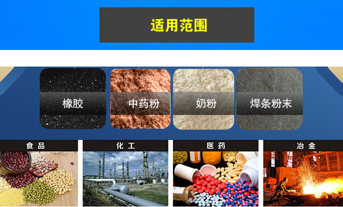 旋振筛广泛应用于食品、化工、医药、冶金等行业,颗粒、粉末、粘液一定范围内均可筛选, 如:米粉、奶粉、豆浆、油漆、纯碱、柠檬粉、橡胶、塑料、中药粉、电磁材料、金属粉末、焊条粉末、石英砂等。