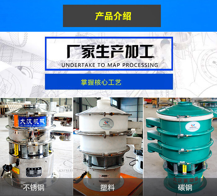 旋振筛又叫三次元旋振筛,筛分精度高,设计有弹跳球清网装置,可降低堵网风险,大汉厂家旋振筛型号全,可以支持定制,关键是厂家直销,价格比较便宜,欢迎用户随时来咨询.