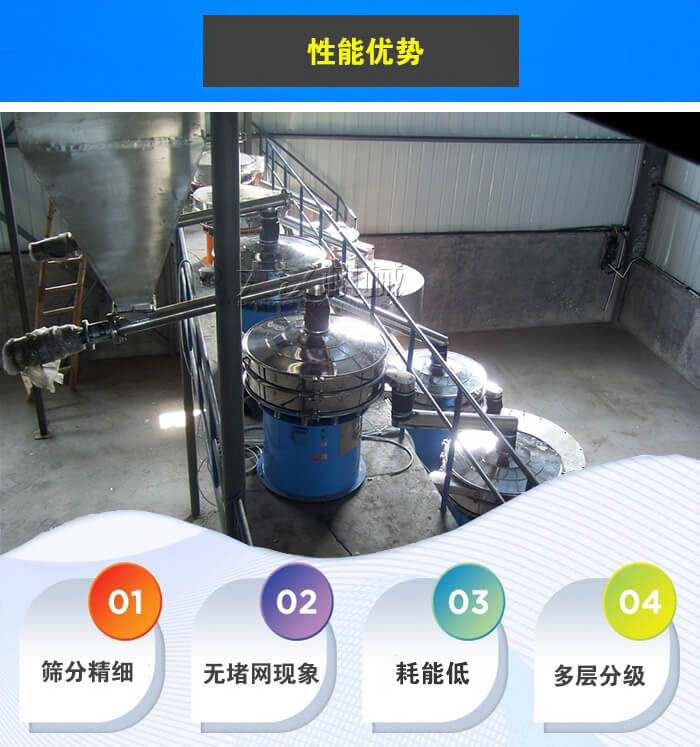 【优势】①筛分精度可达到500目,筛分精细;②可加装弹跳球清网装置,无堵网;③物料可自动排出,筛分效率高;④可按用户要求免费定制。