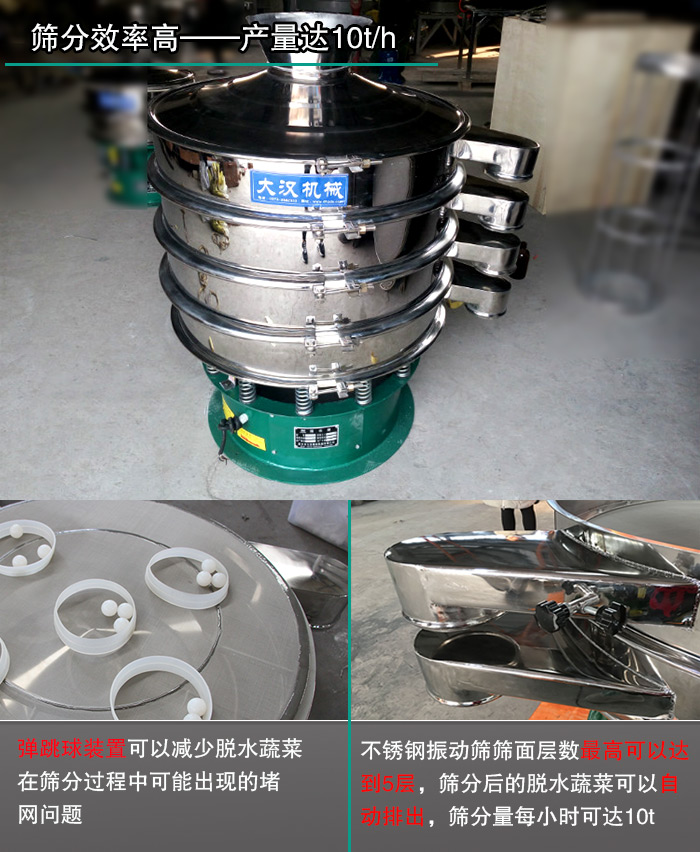 脱水蔬菜是将蔬菜进行洗涤、烘干等工序加工而成的,既便于贮存和运输,又能有效地调节蔬菜生产淡旺季节,在脱水蔬菜制作工程中需要使用到振动筛对脱水蔬菜颗粒、粉末进行筛选除杂与分级,那么脱水蔬菜应该选择哪种振动筛呢?