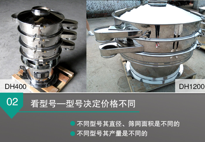 新乡大汉全不锈筛振动筛生产的直线振动筛型号从DH600到DH2000,不同型号的全不锈钢振动筛,其直径、筛网面积是不同的,所以这就决定了不同型号的全不锈钢振动筛产量是不同的,这也必然会造成全不锈钢振动筛价格上存在明显的差异。 看设计—设计决定价格不同